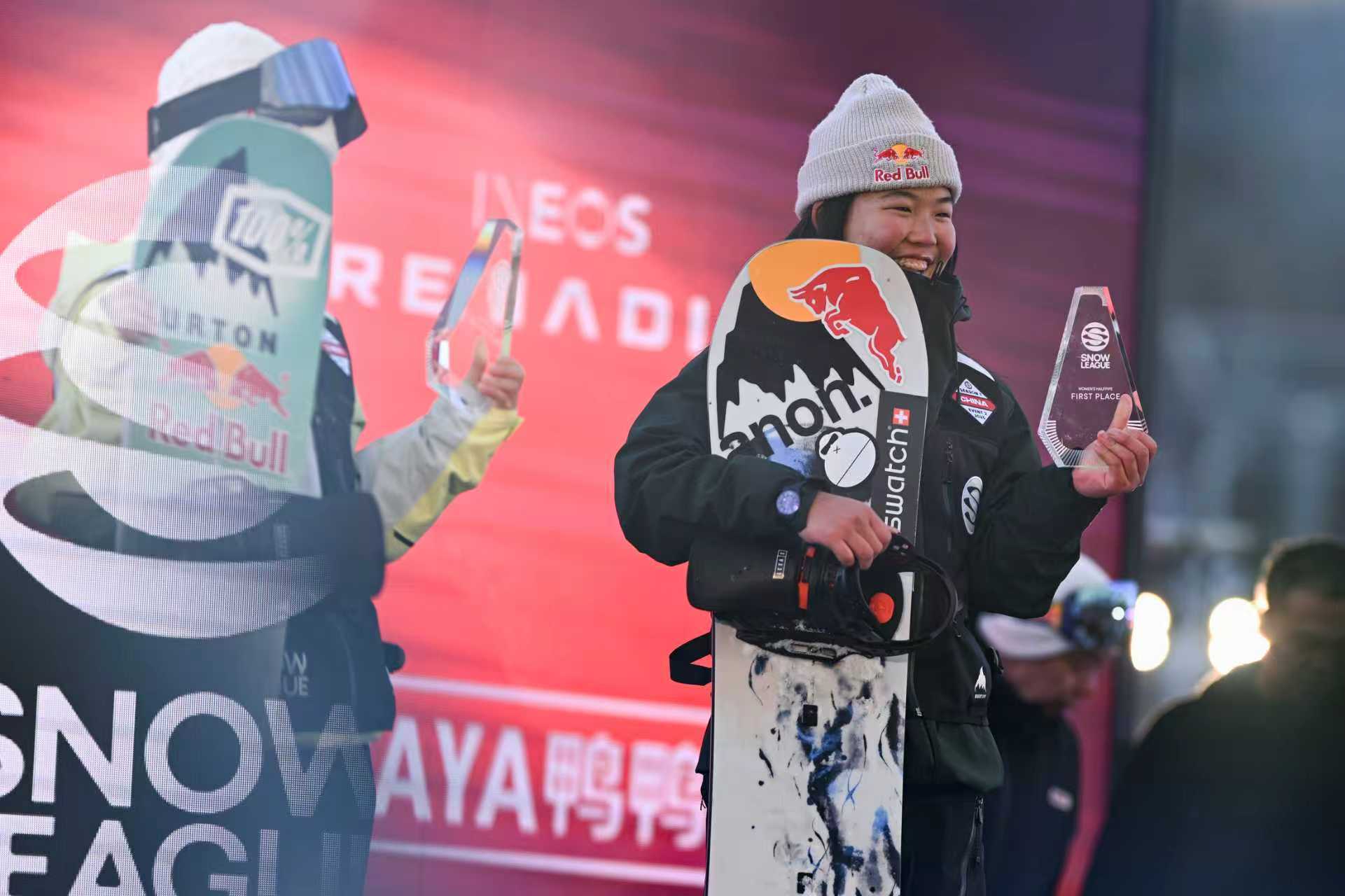 周苡竹(右)在受奖典礼上。张林源 摄雪盟滑雪赛是零丁于国外滑雪和单板滑雪归并会(以下简称“国外雪联”)体系外的一项雪上赛事。该赛事扩充邀请制,仅邀请寰球最顶尖的单板息争放式滑雪选手插足,其赛制为淘汰赛。